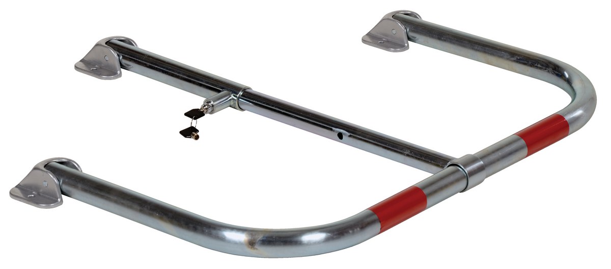 Galvanized Heavy Duty Fold Down Parking Hoop 34 In. x 12 In. x 18 In. SilverThe hoop bollards are ideal for industrial and distribution facilities. The heavy duty, steel construction is durable and long lasting through the harshest of environments. When engaged, the parking hoop is both a visual and safety barrier. Easy to operate. Secures in both open and closed position via internal lock, two (2) keys included.
