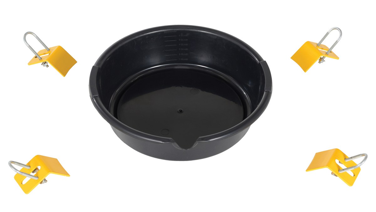| Uniform Capacity (Quarts): 6 | Parts Included: (8) Lock Washers, (4) U-Nuts, (8) Hex Nuts, (4) Brackets, (1) Drip Pan |