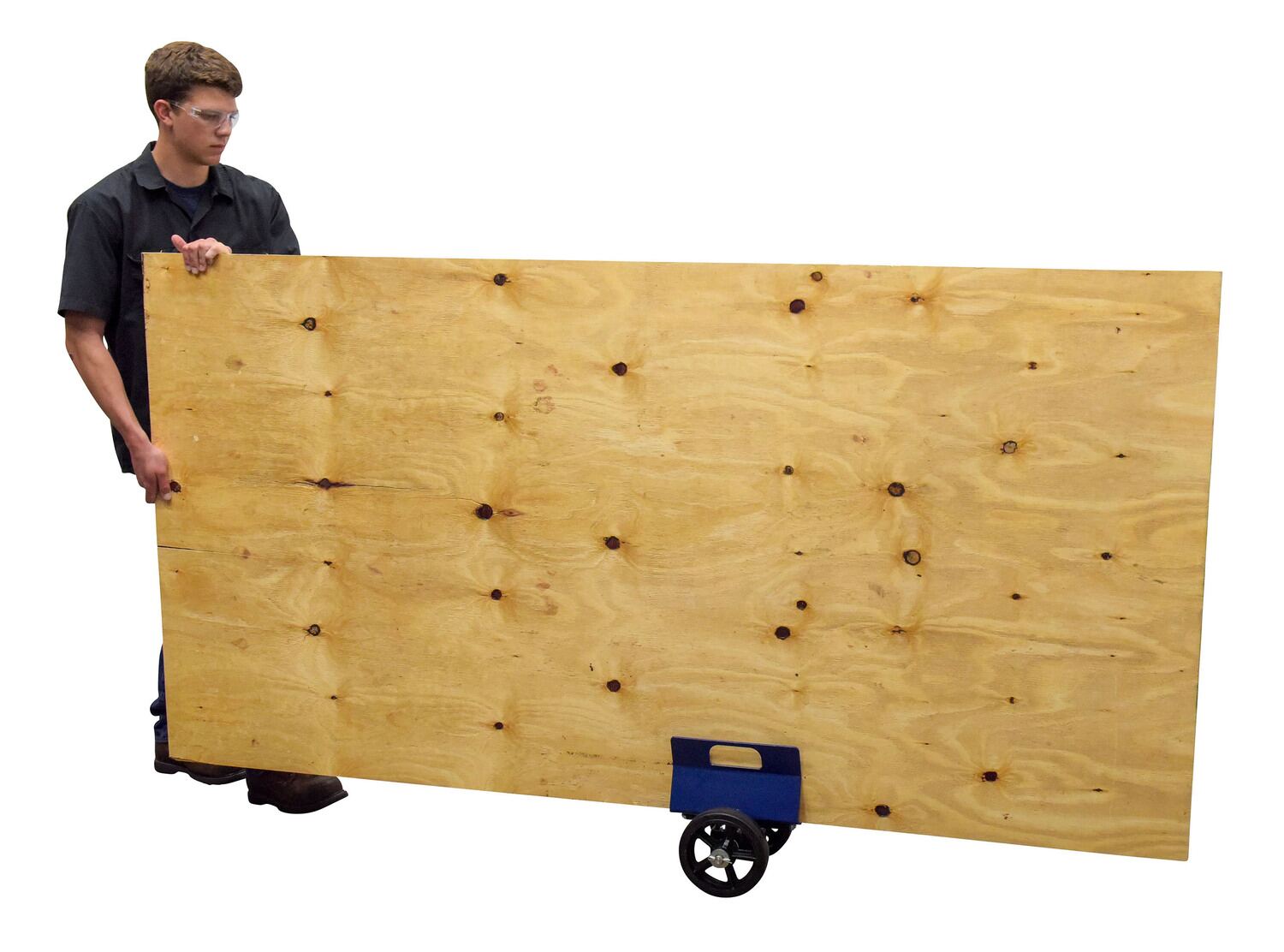 Steel Heavy Duty Adjustable Panel Dolly With Mold On Rubber Casters 12 In x 12-1/4 In x 12-1/4 In 1200 Lb. Capacity BlueThis heavy-duty plate/slab dolly has an auto-clamp feature. The unique design grips plate/slab when weight is added. Opening for use with thick plate/slab. Hand holds are great for carrying. Steel construction with line-X lining inside.