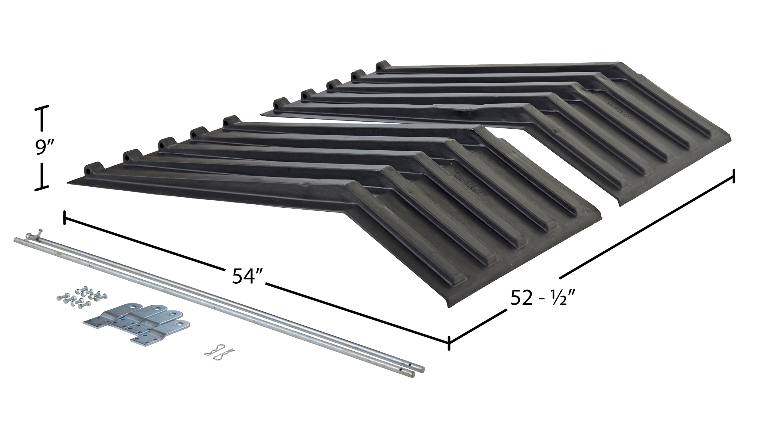 Keep the contents of hoppers out of sight and safe from the elements with a heavy-duty poly lid for self-dumping hoppers. Not only is this lightweight design simple to open and close, but an added benefit of the poly construction is the minimal noise created during the closing process. The multi bracketed connection to the hopper allows the lids to swing freely up and down without constraint.