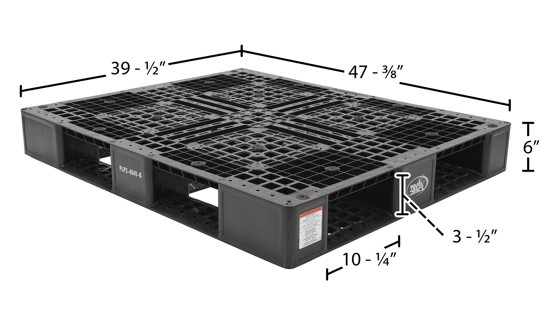 High Density Polyethylene Pallet 39-1/2 In. x 47-3/8 In. x 6 In. 8000 Lb. Capacity BlackPlastic pallets are stackable for efficient storage. Made of high-density virgin polyethylene for long life. Plastic pallets are maintenance free and safer to handle than wooden pallets. Features a four-way entry and serrated deck with holes for drainage. Plastic pallets are ideal for export, pharmaceutical, medical, and food applications.