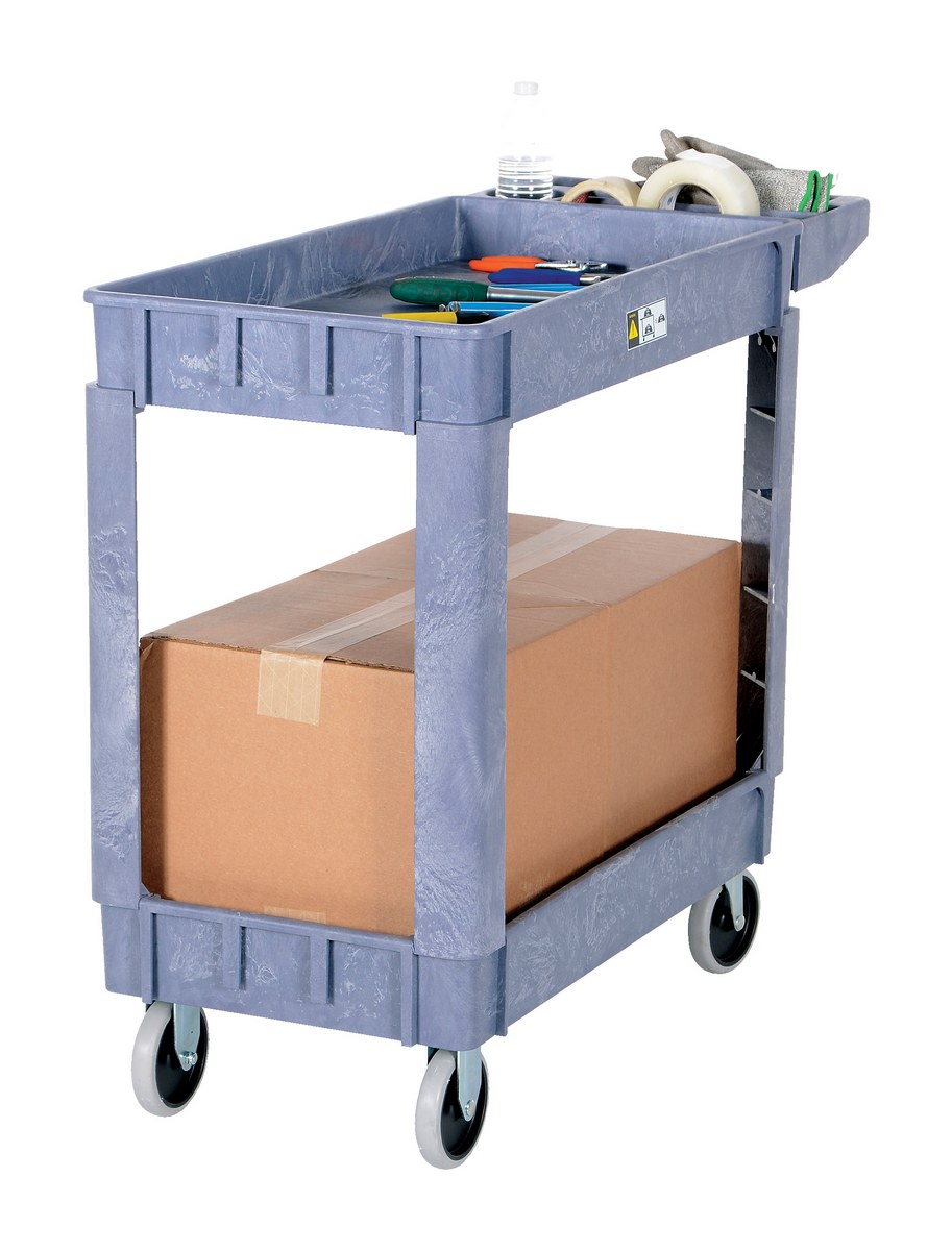 Plastic Utility Service Cart 2 Shelves 40 In. x 18-1/2 In. x 33-1/2 In. 550 Lb. Capacity GrayThis plastic utility service cart is constructed from durable yet lightweight structural foam plastic. Choose the two (2) shelf design to accommodate your application. Deep lips prevent parts from rolling off. Ideal for mail rooms, shipping docks, grocery stores, warehouses, and inventory rooms.
