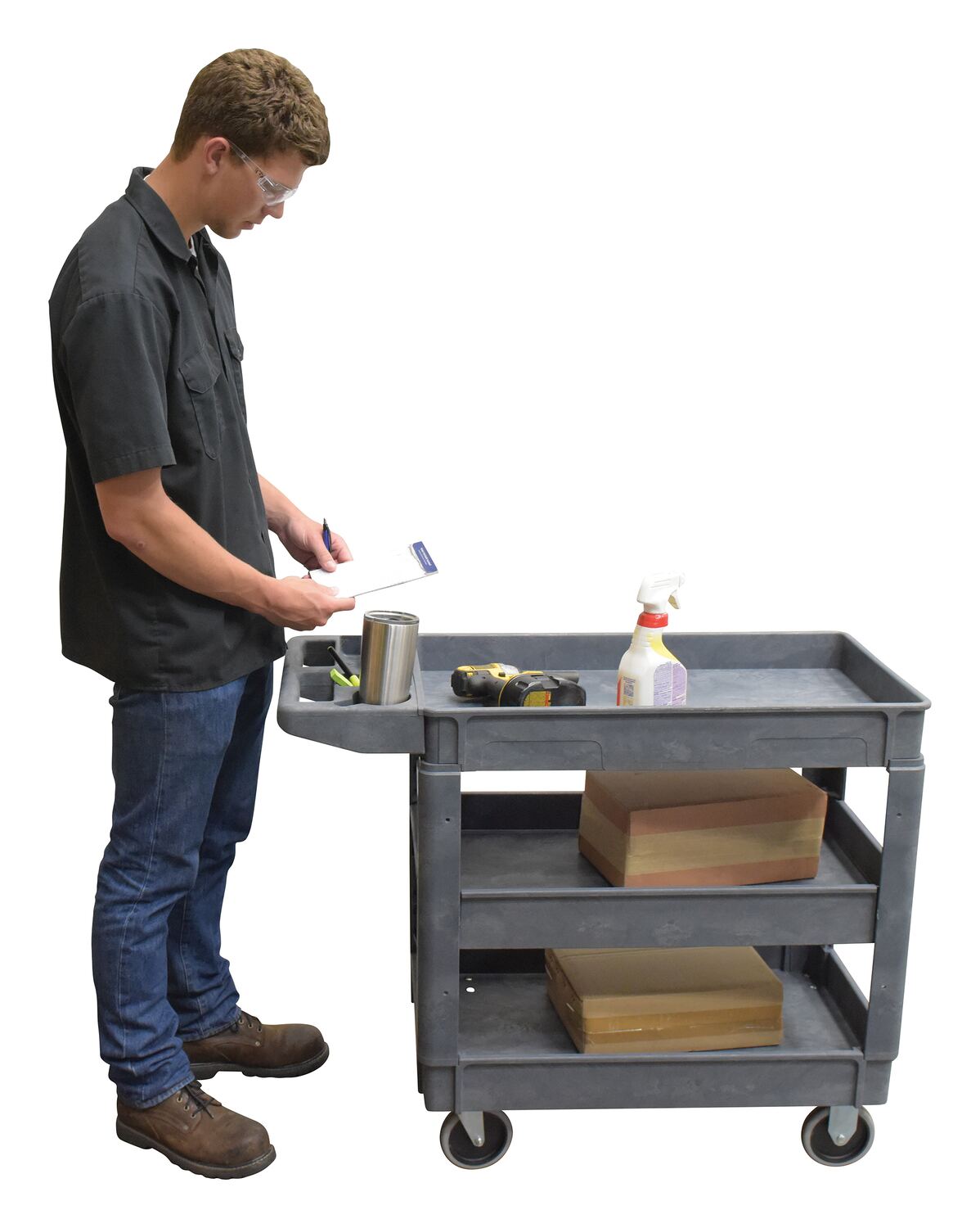 This plastic utility service cart is constructed from durable yet lightweight structural foam plastic. Choose the three (3) shelf design to accommodate your application. Deep lips prevent parts from rolling off. Ideal for mail rooms, shipping docks, grocery stores, warehouses, and inventory rooms.