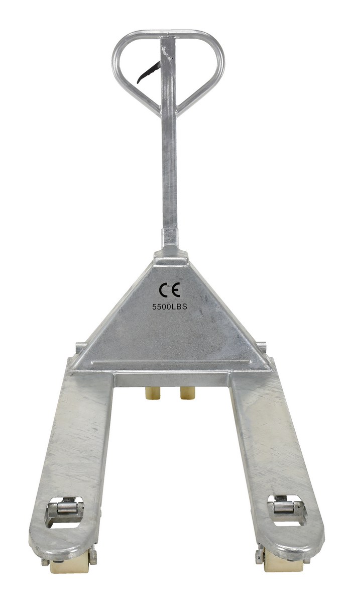 Galvanized Steel Pallet Truck 62 In. x 27 In. x 48 In. 5500 Lb. Capacity GrayThe specialized pallet truck is ideal for corrosive environments. The full-featured pallet truck is designed for chemical, pharmaceutical, and wash-down applications.