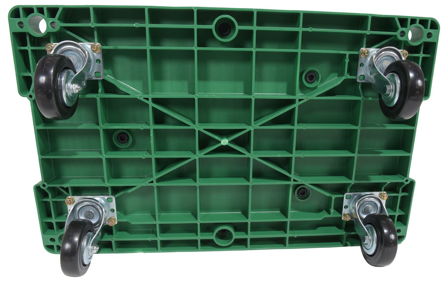 Polyethylene Dolly 30 In. x 18 In. x 6-5/16 In. 500 Lb. Capacity GreenThis plastic dolly is one (1) piece molded polyethylene. It is very lightweight and easy to clean. Will not rot, warp, dent, or splinter like wood dollies. Ideal for the food service industry. Unit comes standard with poly-on-poly casters.
