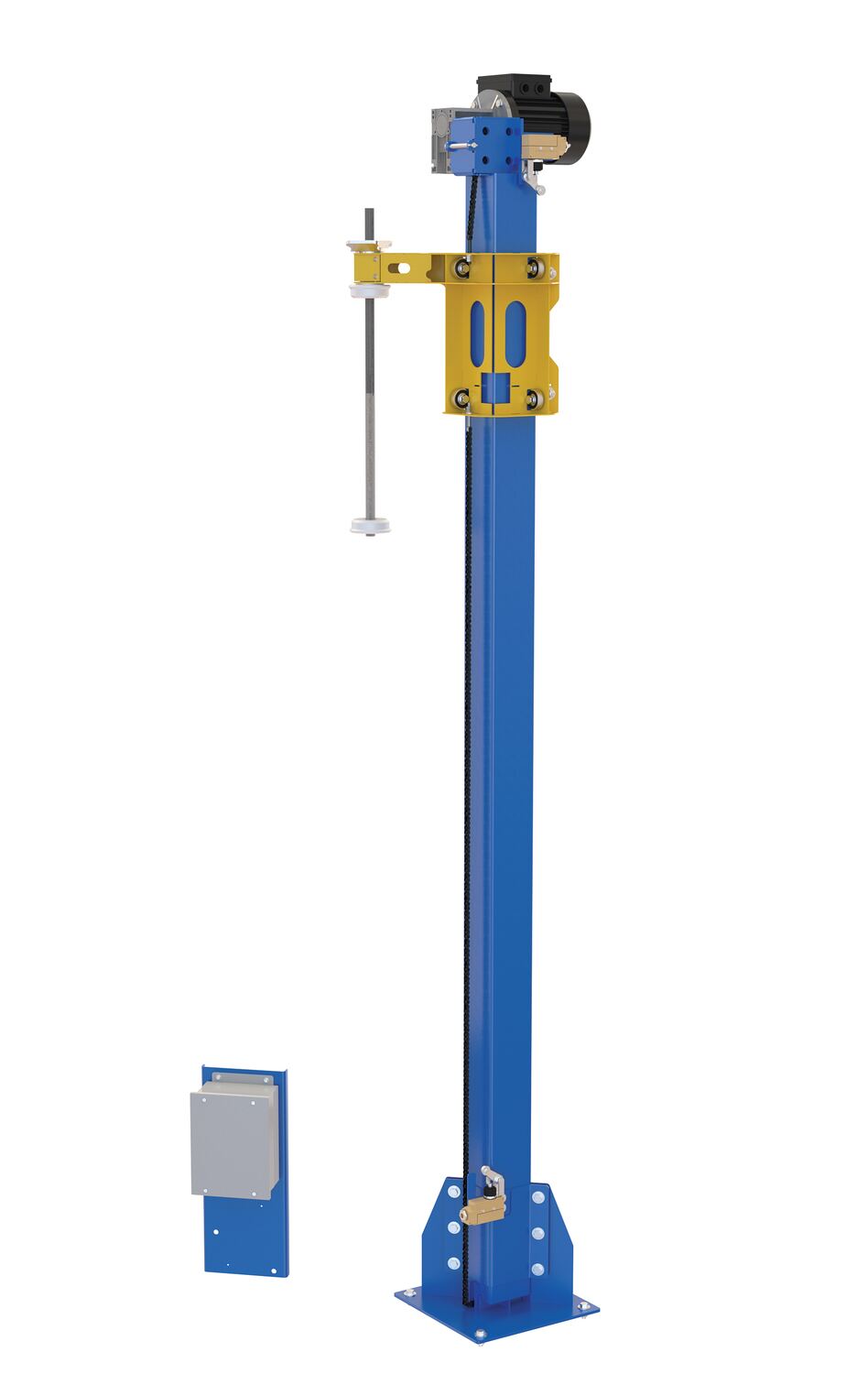 Steel Powered Mast 115 Volt Field Installed For POW-CAR Models Blue / YellowAttractive and functional design ideal for directing personnel. Interlocking portable railing has many commercial and industrial applications. Easy to move to meet changing needs. Upright bars are vertically spaced at 5?" intervals for the light-weight style barriers and 5." for the heavy-duty style. Each railing includes connectors to attach multiple units together to form long runs. Overall size is 102"L x 40"H. Feet are removable so railing will lay flat for shipping and storage. Variety of foot styles available. Rugged welded steel construction. Sign included.