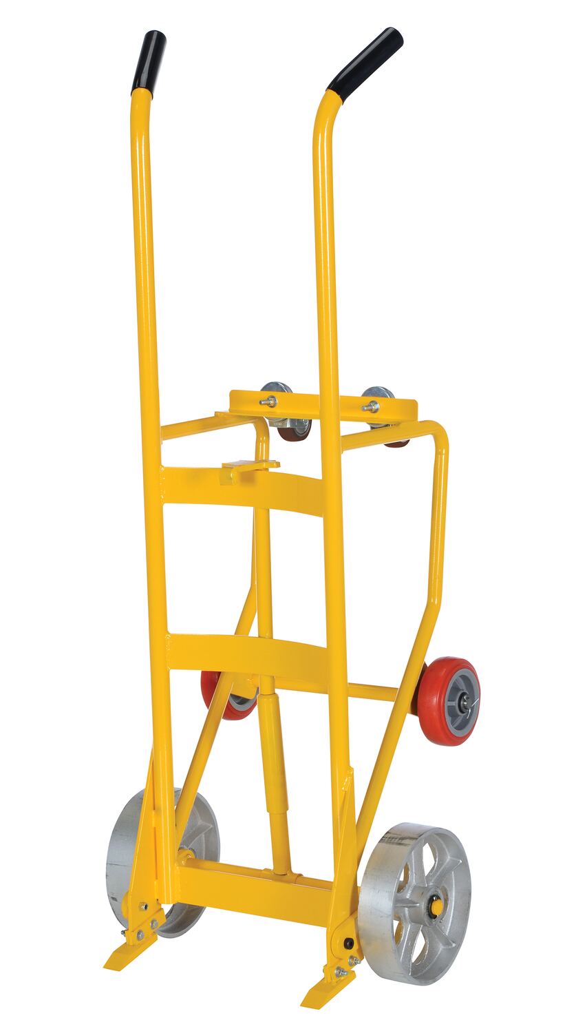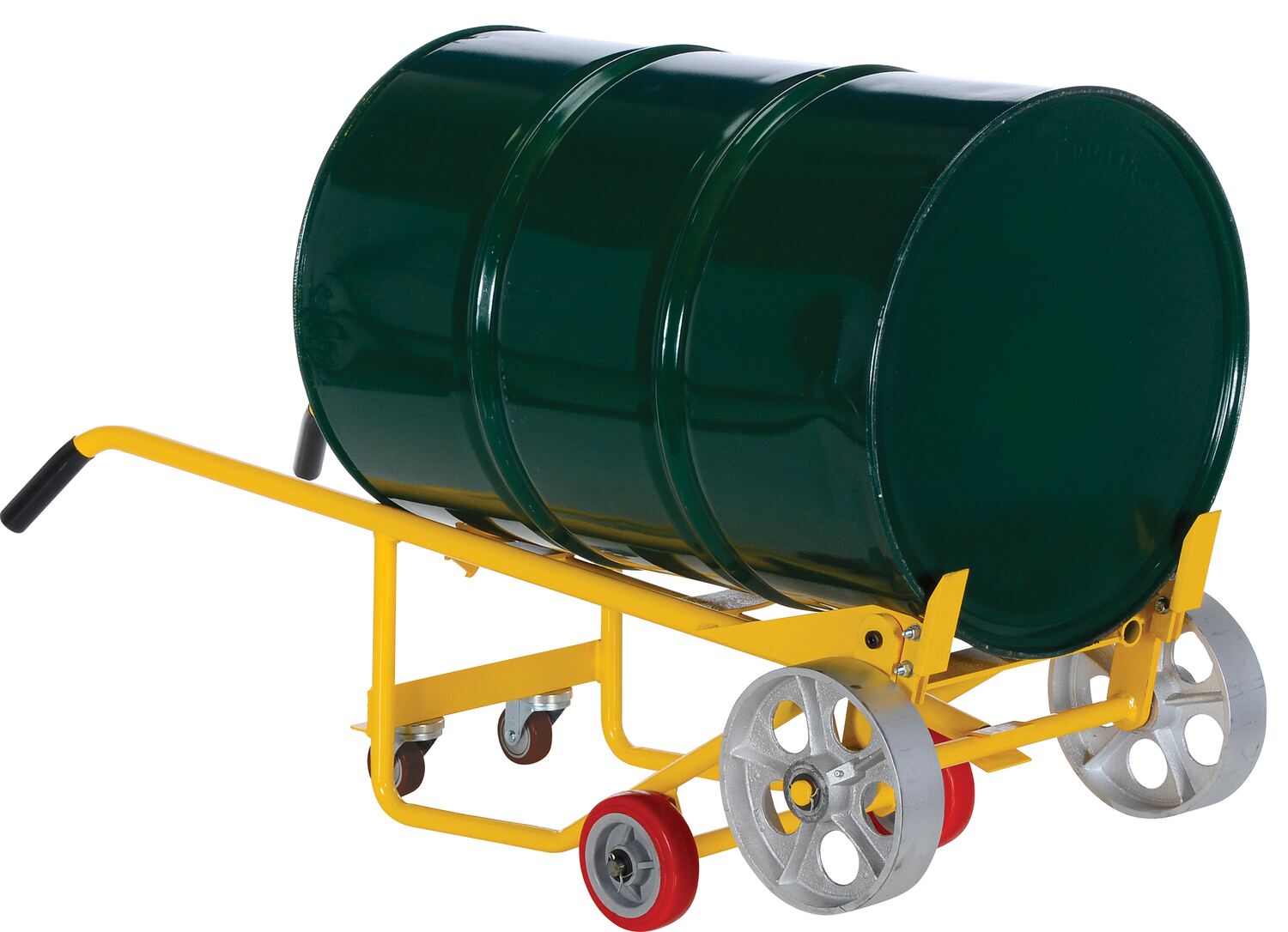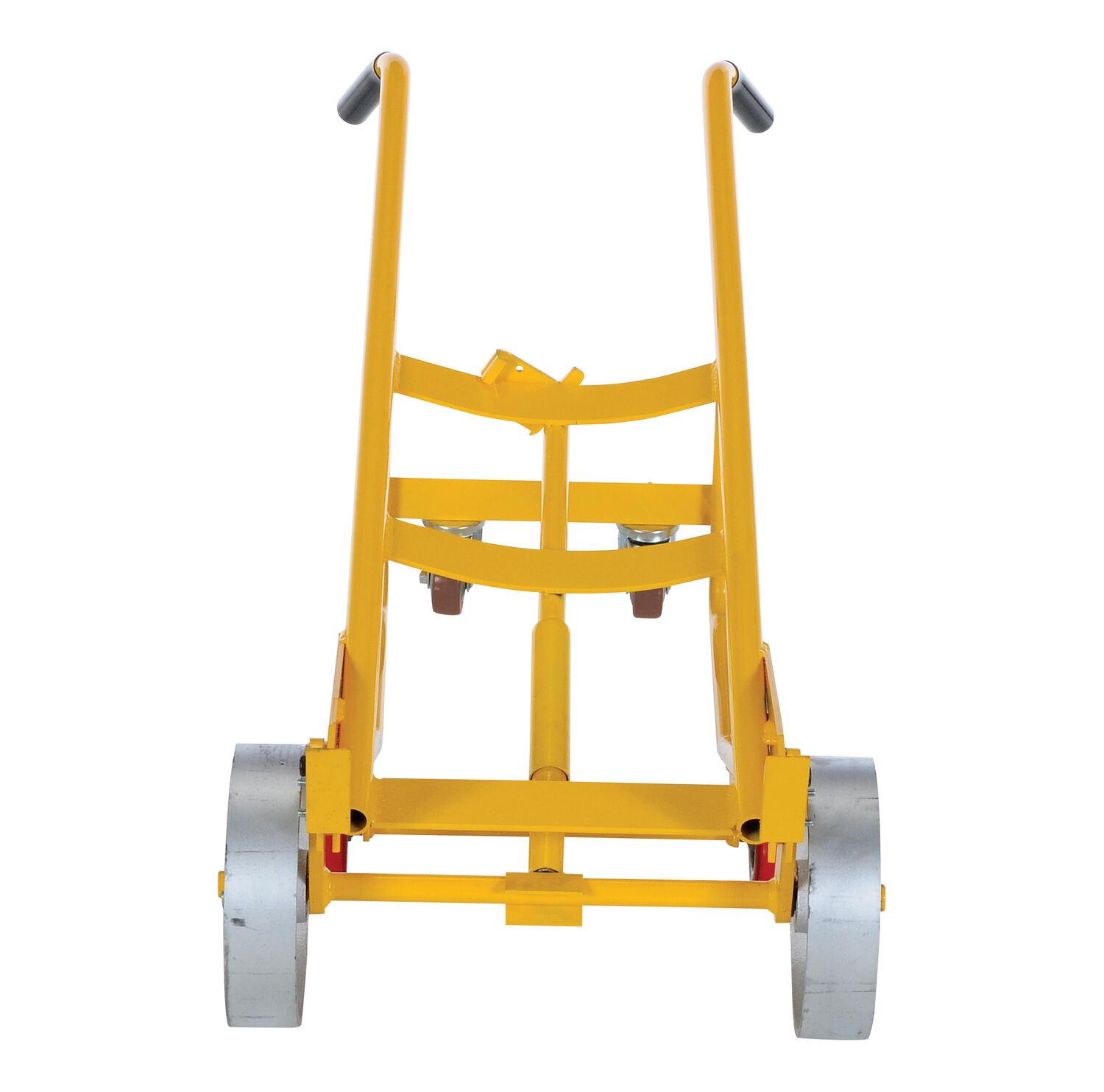 Steel Drum Truck Cradle With Semi-Steel Wheels 20-1/16 In. x 23-11/16 In. x 60-5/8 In. 1000 Lb. Capacity YellowThis multi-purpose drum truck/cradle is one of the most versatile drum trucks in the industry. This innovative product allows the operator to easily tip back the truck in order to transport drums ergonomically on four (4) wheels. Unit doubles as a drum cradle for storage and dispensing all in one. This unique design also allows the operator to place drums and retrieve off of a pallet. Standard with a wheeled undercarriage that positions the drum horizontally for drainage or storage. An integral self-storing bung wrench is standard. This attractive feature not only opens numerous drums, but helps to keep the drum snug on the truck. Powder coat finish.