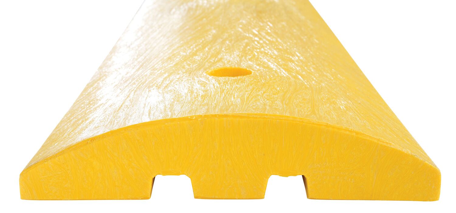 Plastic Speed Bump Asphalt Hardware 48 In. x 12 In. x 2-1/4 In. YellowThe speed bump is ideal for a variety of parking areas, both inside and out. The speed bump helps to control drivers from injuring people and property. The unit can be installed/removed by one person resulting in smooth portability. The strong recycled plastic construction can be used where traffic is frequent and can hold up to the constant day to day harm from chemicals and sunlight. Features a dual cable channel. The HD asphalt kit includes anchors, bolts and washers. The HD anchor should be epoxied (epoxy not included) into the ground and then the speed bump is secured to that anchor with a bolt and washer.