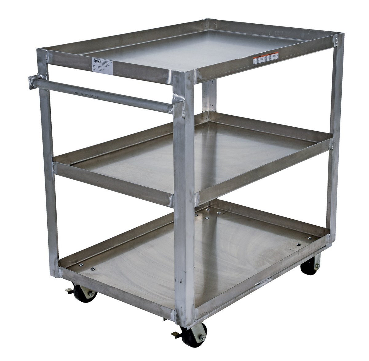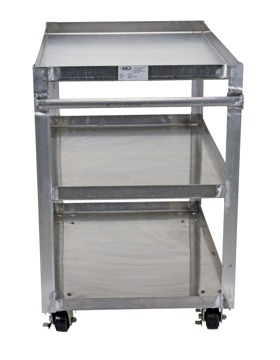 Aluminum Service Cart 3 Shelves 42-5/16 In. x 27-15/16 In. x 41-3/4 In. 660 Lb. Capacity SilverAll welded service cart, made of aluminum is ideal for transporting parts and boxes. This unit has three (3) shelves, a lip is turned up on all shelves to prevent items from sliding off.