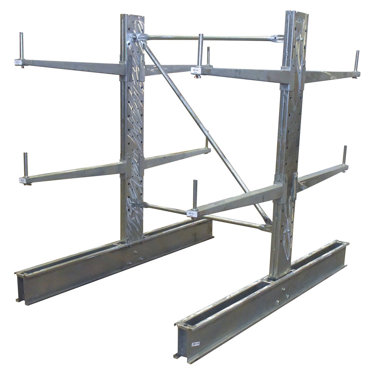 Galvanized Steel Standard Cantilever Double Upright 6 Ft. Height 36 In. Arm Use Length Set 10,400 Lb. Capacity GrayA galvanized cantilever rack kit makes storing and picking large items as simple as can be. A strong steel construction with a galvanized finish makes an already durable product even more robust. The double sided unit can be maneuvered into areas where they are accessible from either side. The rack includes pre-drilled holes for mounting the uprights to the surface of the users choice. Capacity is calculated per level.
