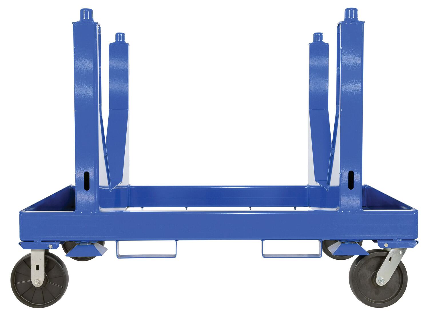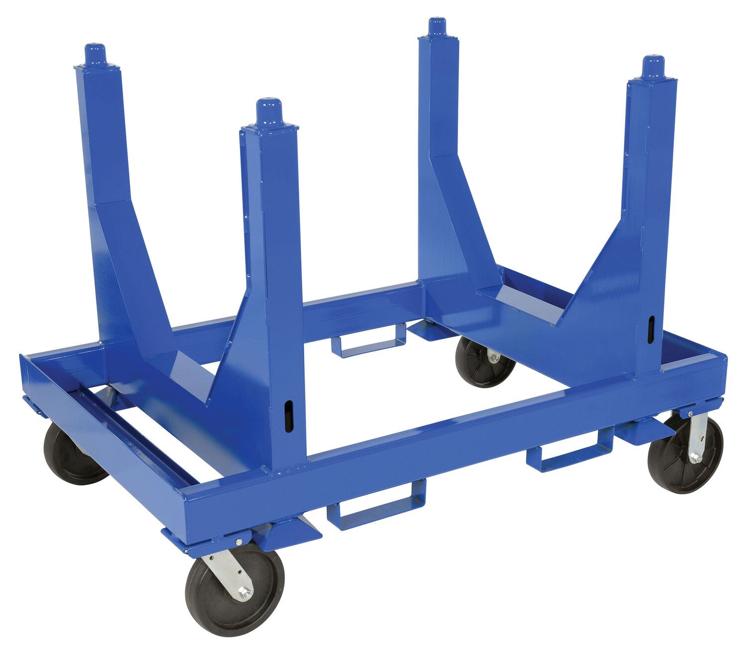 Steel Heavy Duty V Bottom Stackable Material Cart 36 In. x 54 In. x 40 In. 5000 Lb. Capacity BlueA stackable material V-bottom cart provides the same great benefit of a standard material cart, while allowing multiple units to be stacked for a smaller warehouse footprint. A steel platform and structure enables a larger weight capacity of items to be maneuvered in a more efficient time-frame. The V shaped bottom design is perfect for pipe and other cylinder shaped items. The surface is smooth to diminish the chances of abrasion during any possible jostling. The units are stacked together using a simple four corner post design for a more even weight distribution.
