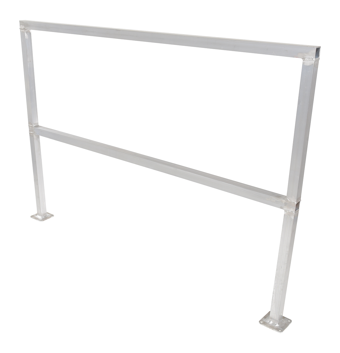 Aluminum Safety Handrail 62-1/2 In. x 4 In. x 42 In. SilverAluminum square safety Handrail provides an economical way to protect people and machinery. Applications include loading docks, floor openings, walkways, and mezzanines. Robust design provides stabilization throughout those areas.
