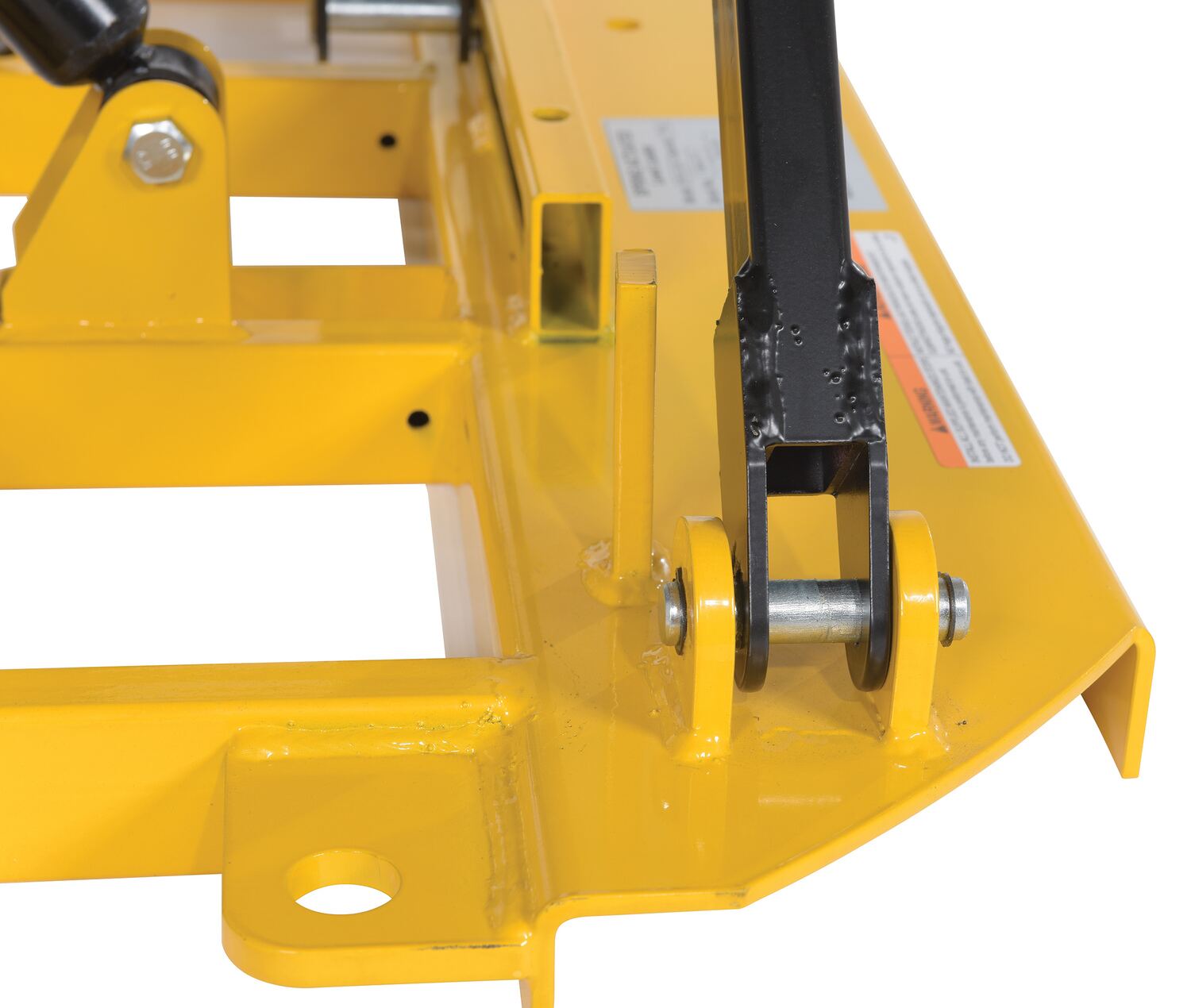 Steel Solid Manual Carousel Top Spring Scissor Table 4,500 Lb. Capacity Black / YellowThe spring scissor table is ideal for distributing and shipping facilities. The unit allows the user to transfer products from work space to work space, while holding an ergonomically friendly position. The frame is designed of a steel construction, which allows for strength and durability. The scissor mechanism raises the unit to the desired height, while the internal spring provides support when unit is being loaded and unloaded. The round top can be manually rotated 360 degrees for improved packaging and handling capabilities.