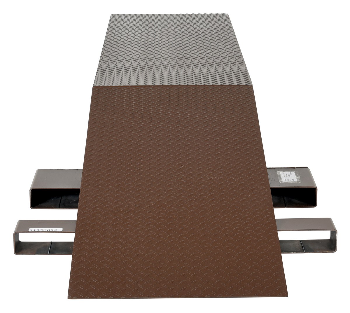 Steel Wheel Riser 108 In. x 24 In. x 12-1/4 In. 40,000 Lb. Capacity BrownWheel risers are designed to raise trailers to an appropriate crossover height for loaded fork trucks. Made of heavy-duty welded steel construction, these wheel risers are built to last! Each riser is equipped with fork pockets for easy transportation wherever a fork truck is available. Ramps may be stacked for convenient storage when not in use. Wheel risers are sold and priced as individual units.
