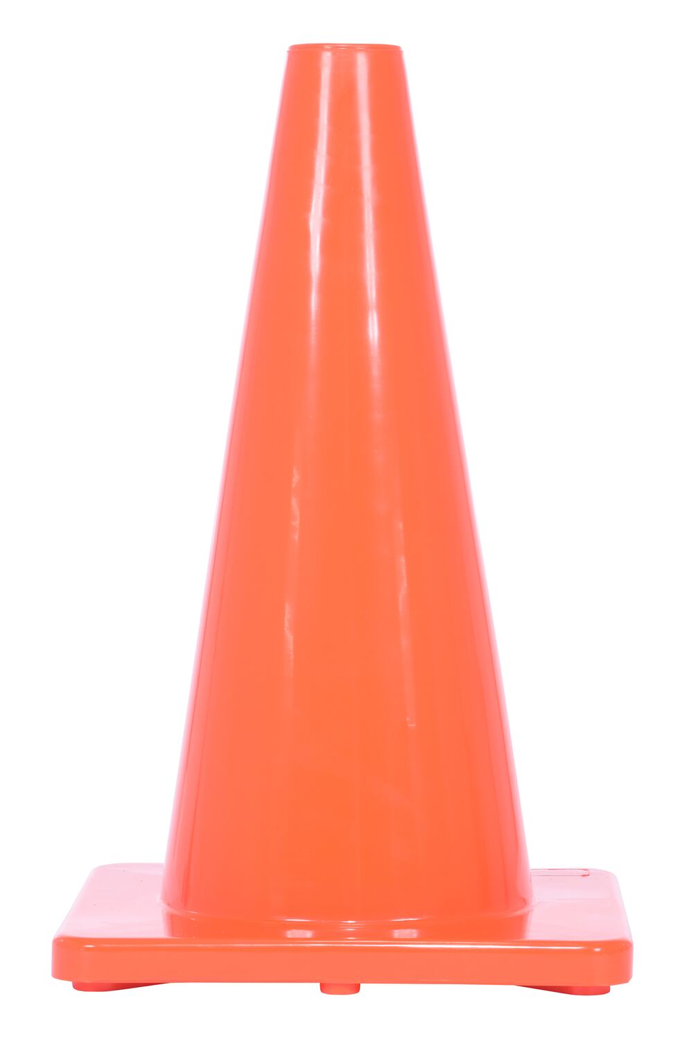 100% PVC Standard Duty Traffic Cone 17-3/4 In. Height OrangeThis durable all weather cone is constructed from one-hundred (100) percent PVC for long life. The construction prohibits fading and cracking. Will retain its shape for years of reliable service.