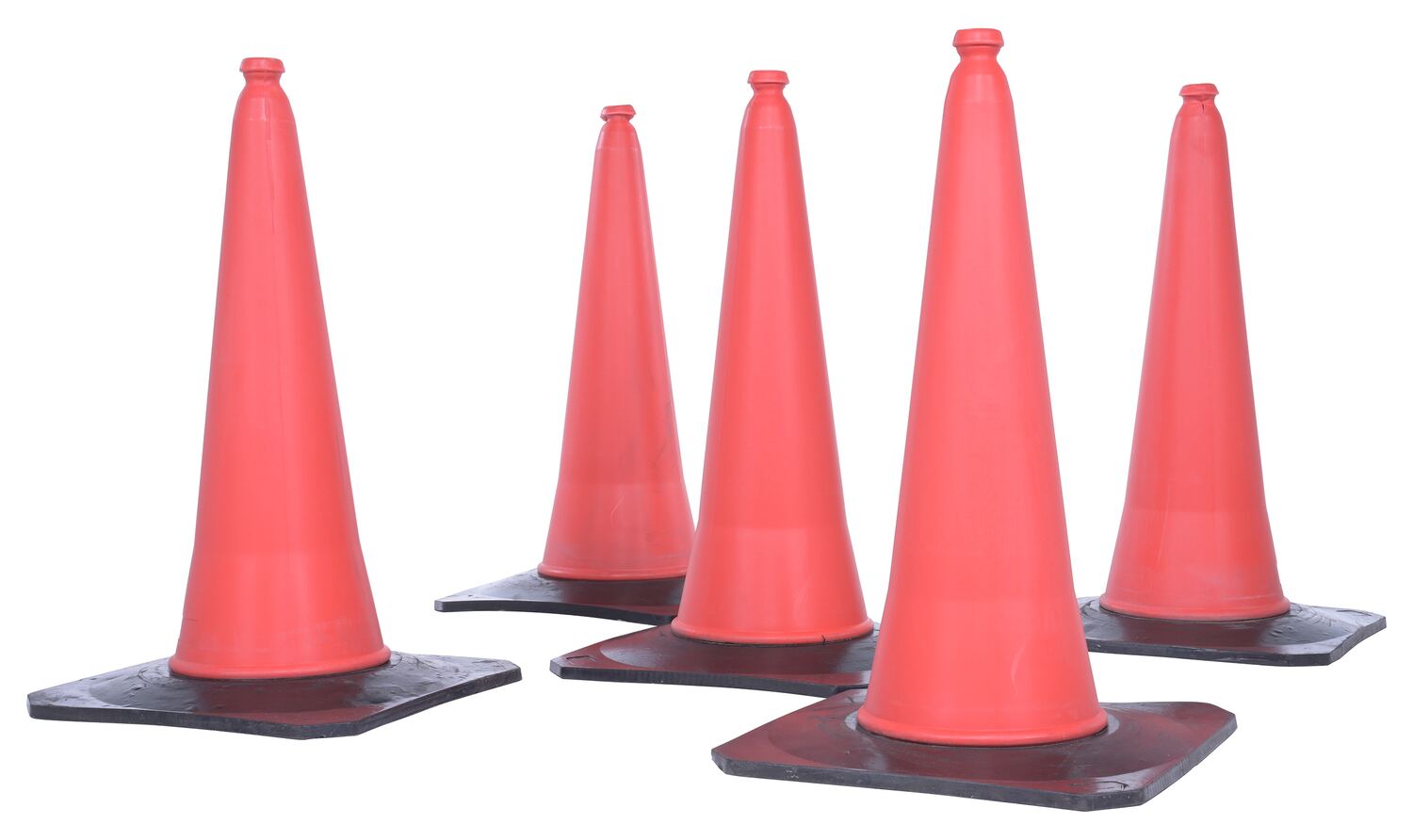 100% PVC Economy Traffic Cones 30-3/4 In. Height 5 Pack OrangeThese durable all weather traffic cones are constructed from one-hundred (100) percent PVC for long life. The construction prohibits fading and cracking. Will retain their shape for years of reliable service.