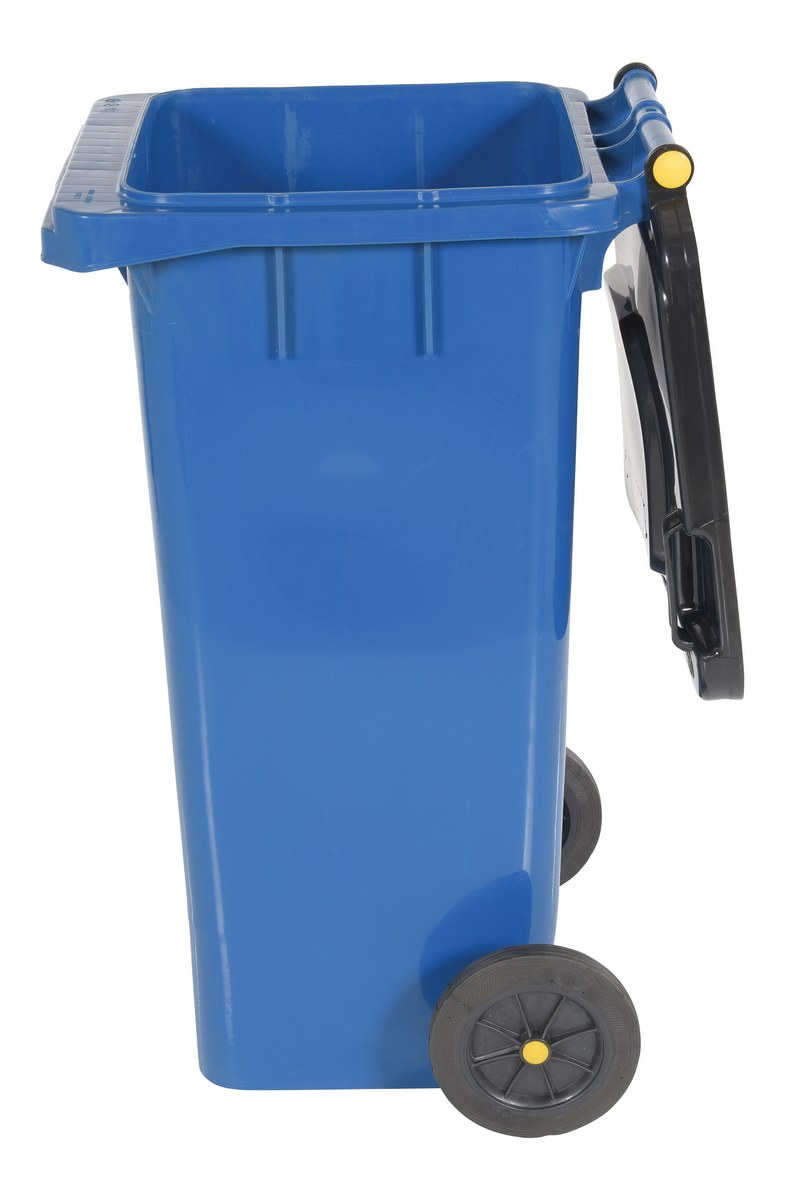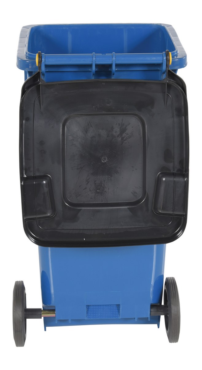 High Density Polyethylene 32 Gallon Trash Can BlueThe trash can is constructed of durable polyethylene that withstands subzero cold and extreme summer heat. Great for high traffic areas such as: warehouses, fairs, ball parks, schools, etc. Each container includes two (2) wheels for easy portability and hinged lips to keep the rain out. Keep your waste out of eyesight in our heavy-duty and easy to move refuse containers.