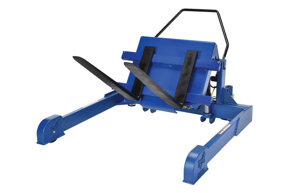 Steel Tilt Master Straddle AC Powered 2,000 Lb. Capacity BlueThe tilt master straddle lifts and positions filled tote boxes or baskets without the need of a fork truck or lift table using the newly designed heavy-duty tilt master. The tilter will function as transporters by moving completed products from work station to work station without waiting for a fork truck. This lift has a thin profile to allow the user to get as close to the load as possible. The unit has a standard floor lock and rolls easily on the phenolic steering wheels. Lift is designed to be used with virtually any kind of container or pallet and is powered by an AC electric motor that.