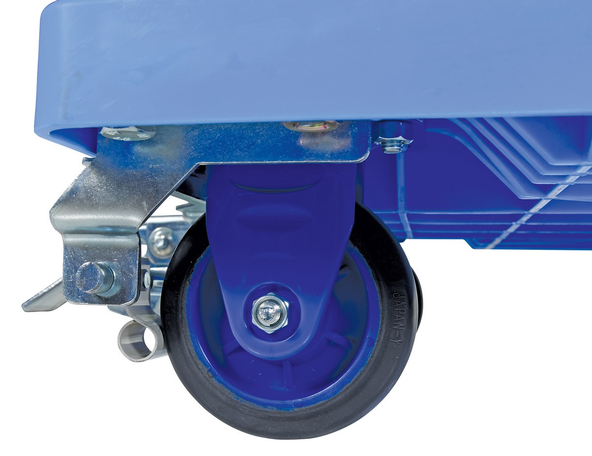 Plastic Truck Mesh Sides with Floor Brake 36-1/4 In. x 20 In. x 33-1/2 In. 330 Lb. Capacity BlueThe plastic platform cart is a great addition to the shipping and distributing facilities. The plastic platform creates a durable, yet lightweight construction that can be transferred simply from workstation to workstation. The unit rolls on casters for smooth transference over a variety of terrains, while the side nets enable the utmost security. The attached handle creates a more ergonomic posture of personnel during use, while the brake keeps the unit steady when not in progress.