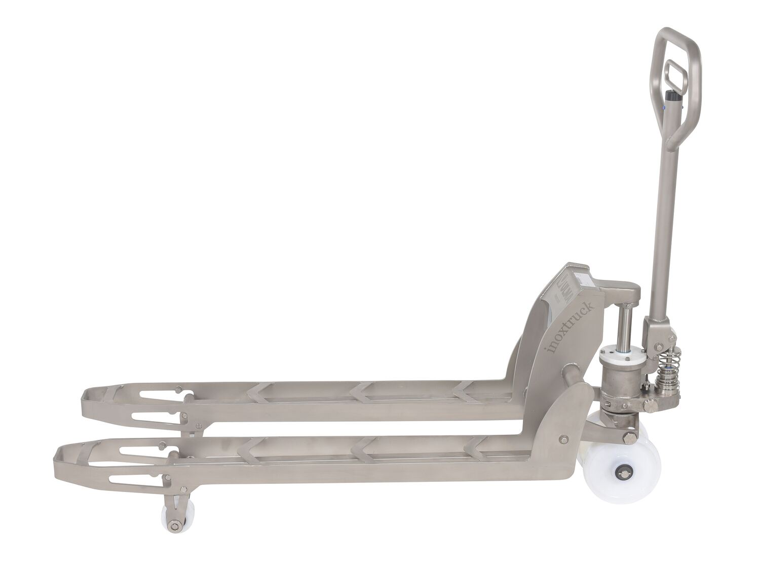 304L Stainless Steel Hydraulic Hand Pump Pallet Jack 20 in. X 45 in. 3,300 Lb. Capacity SilverThe Stainless Steel Hydraulic hand pump pallet jack works well food handling and other hygienic environments. The stainless steel construction including hydraulic cylinders and piston, is not only strong, but also simple to clean. With its open fork design,the jack can be thoroughly detailed before/after transferring products. The height of the ergonomically friendly handle diminishes slouching and can be rotated for simple maneuvering of products down narrow corridors and pathways. All bearings are sealed for waterproof protection during both use and cleaning.