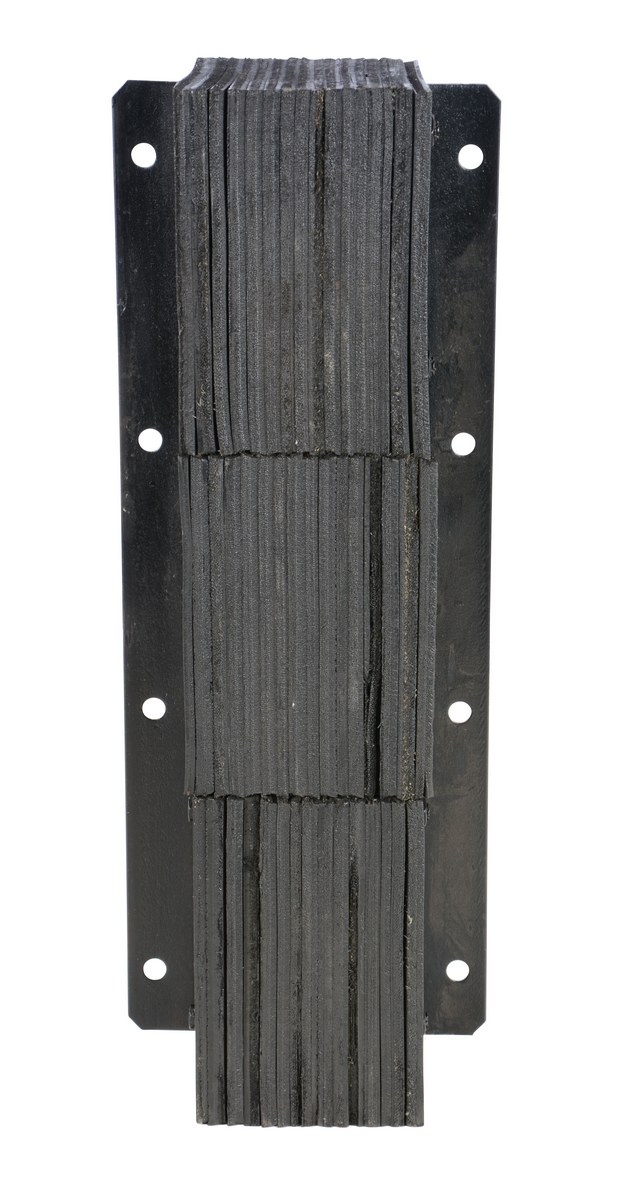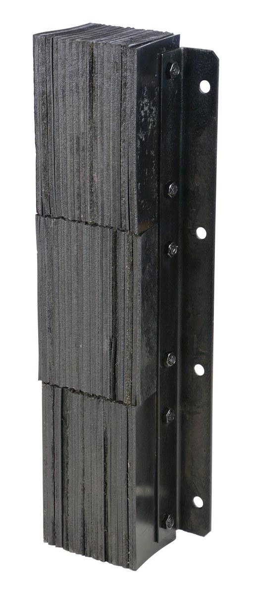 The laminated Dock Bumper provides durable, economical protection for loading docks and trailers. Unit is constructed of fabric reinforced rubber from recycled truck tires. The pads are laminated between painted structural angles and held together with steel tie rods. Installation is quick and easy by bolting or welding unit to the dock. Width is bolt hole center to bolt hole center. The installation hardware is available separately.