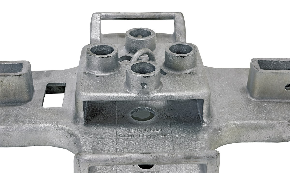 Cast Iron Pipe Safety Railing Base 2.13 In. x 28.5 In. x 5.7 In. GrayThe cast steel base is the perfect accessory for the pipe safety railing. The unit allows the pipe railing to be secured to a central location, while diminishing the chances of personal injuries. When the unit need to be moved, the base includes a caster for smooth rolling from area to area. Great for both indoor and outdoor use.