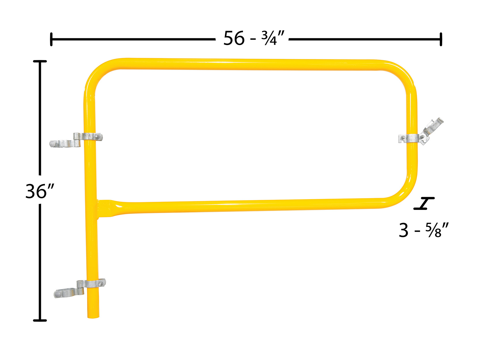 Steel Pipe Safety Railing Gate-P Shaped 48 In. x 36 In. YellowThe steel gate works great as an addition to the pipe safety railing. The steel construction is durable and visible with a yellow finish. Hardware for simple installation is included.