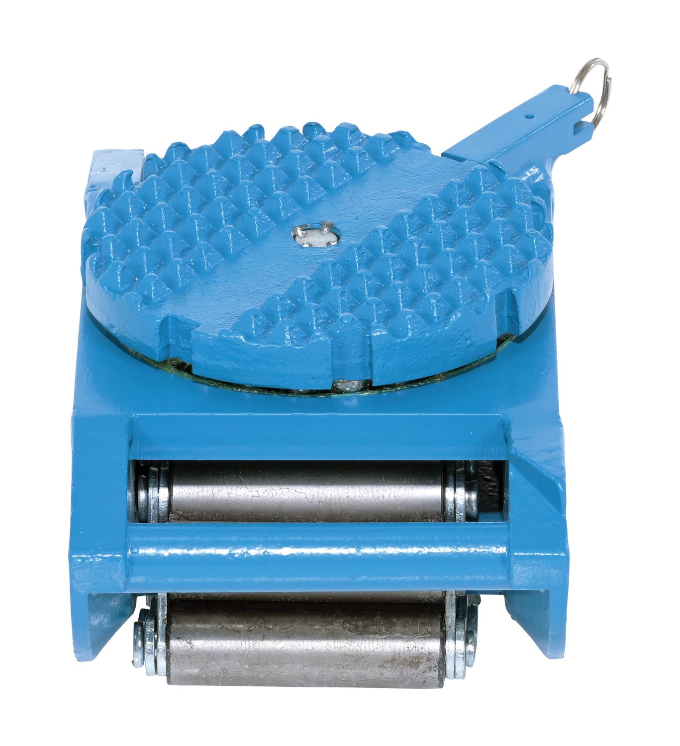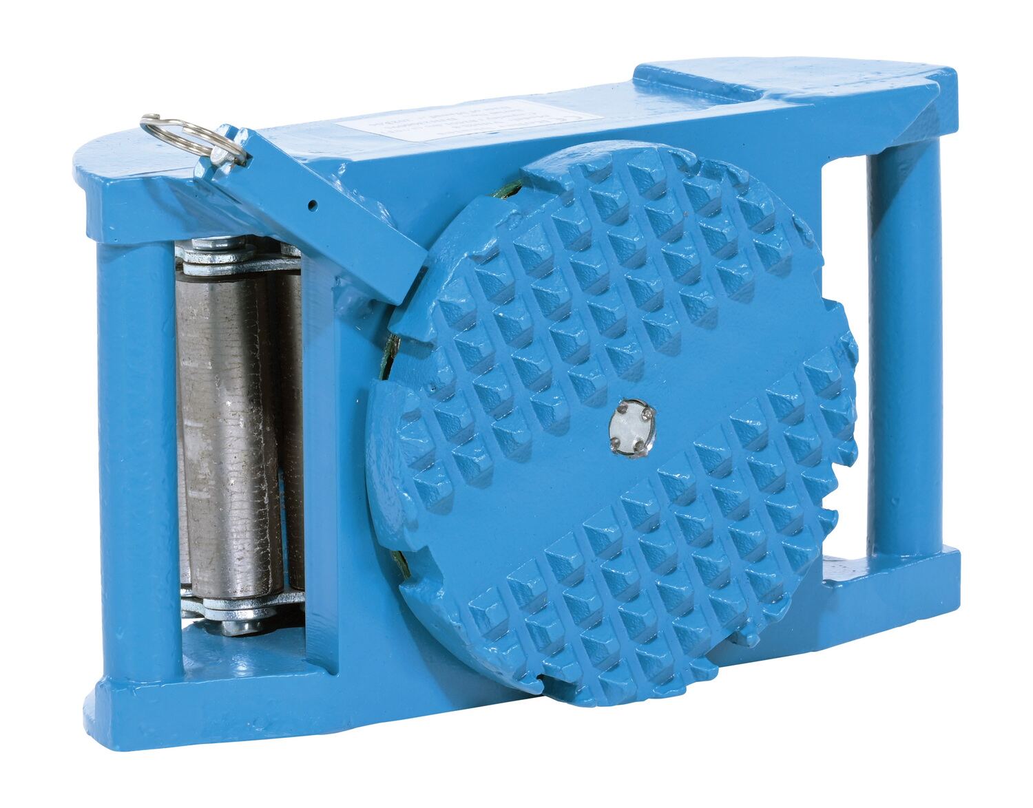 Steel Machine Roller 8,250 Lb. Capacity BlueMade of high-strength annealed ductile iron, this steel machine roller has swivel tops that rotate three hundred sixty degrees (360 degrees) on chrome steel ball bearings to allow for easier turning. The rollers form a "tank track" to revolve around a center load bearing plate in the frame to provide maximum maneuverability. The weight of the load is transferred directly from the load bearing plate to the rollers, eliminating axle friction and requiring less power to start and move. This unit is virtually maintenance free.