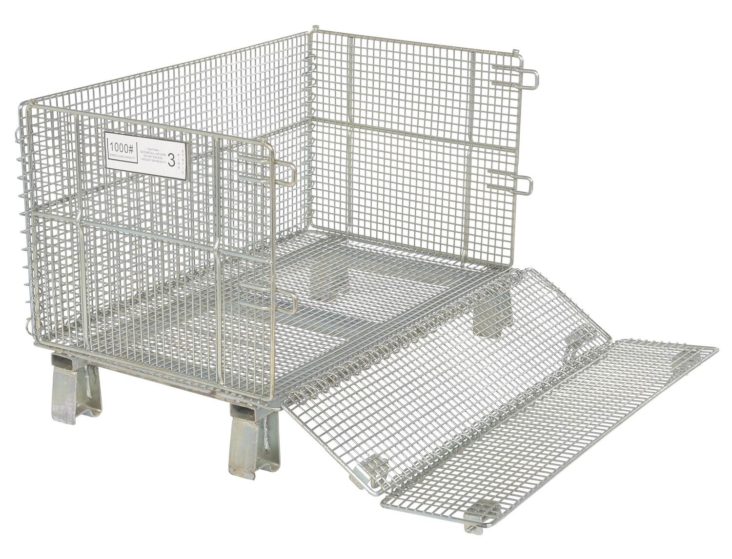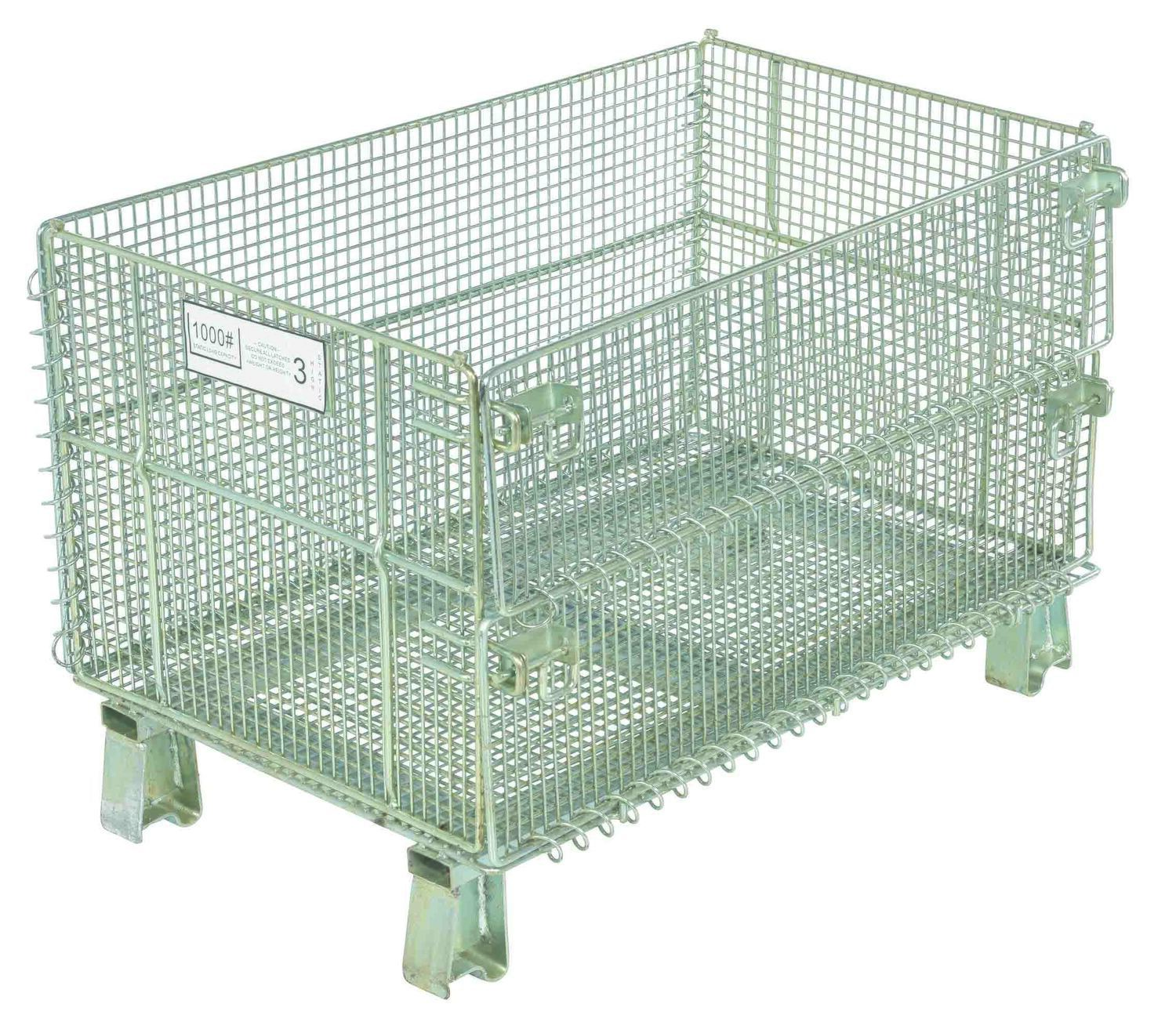 Galvanized Steel Mesh Container 20 In. x 32 In. x 21 In. 1,000 Lb. Capacity GrayThis wire containers allows for efficient storage and transportation. Legs are wrapped and welded around base to eliminate sharp edges. Container can be stacked four (4) high and has clearance underneath to allow movement by fork or pallet trucks.